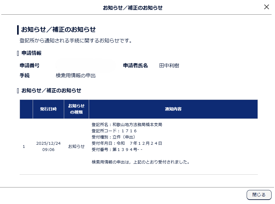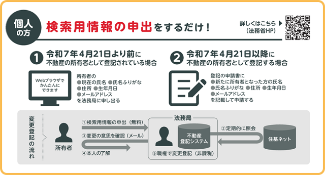 **「検索用情報の申出」**というものを、法務局のサイトから一度だけ行う
