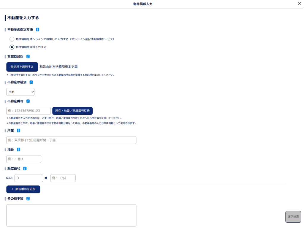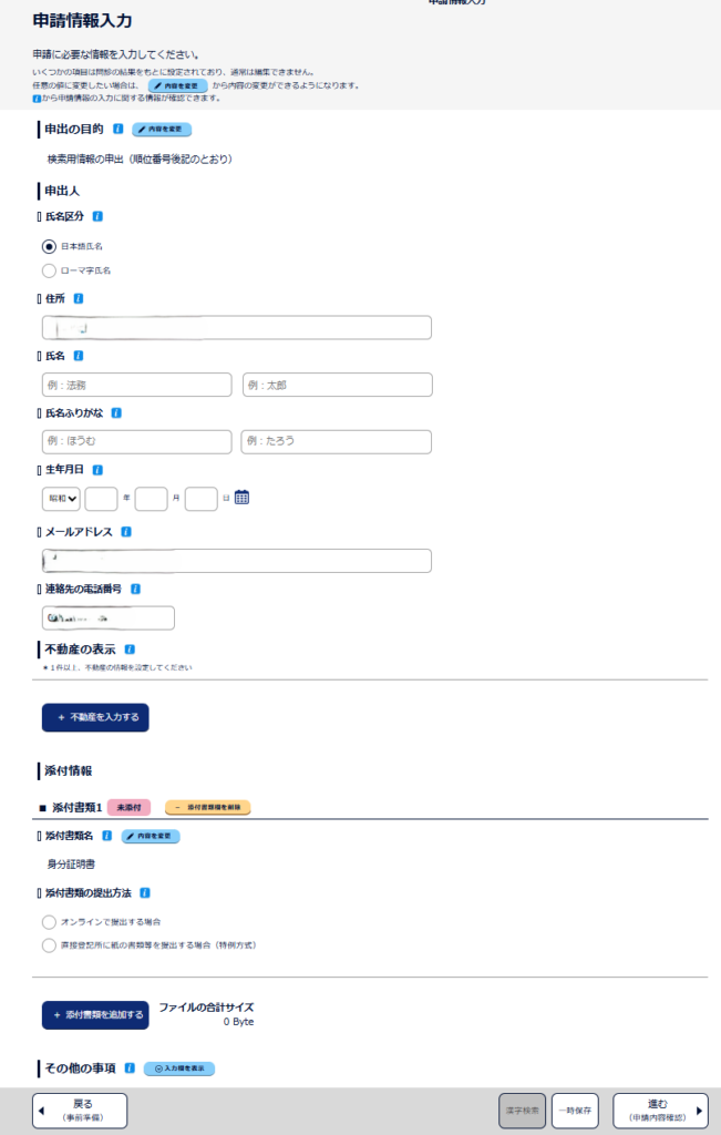 4. 名前・住所・生年月日・不動産の地番などを入力(お持ちの不動産登記簿を見ながら)