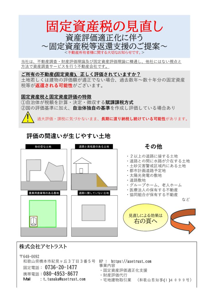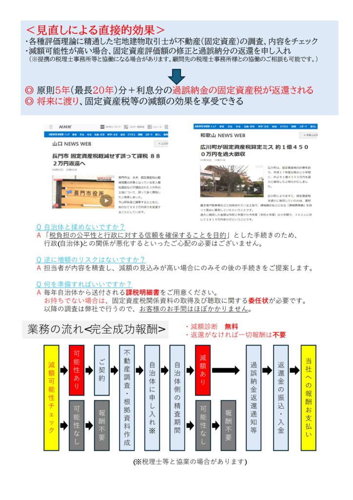 ・あくまで評価額適正化に関する「調査・検証・資料収集・減額根拠の提示等」を行います。